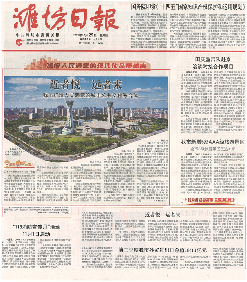10月29日,濰坊日報對我公司服務管理的濰坊市文化藝術中心項目進行了頭版報道,現就我公司服務管理的大型公共建筑項目做如下介紹: 近年來,伴隨經濟的快速發展,居民文化水平、收入水平不斷增加,消費需求不斷升溫,進而帶動文化、娛樂、交通等公眾場館物業服務的需求逐年增加,